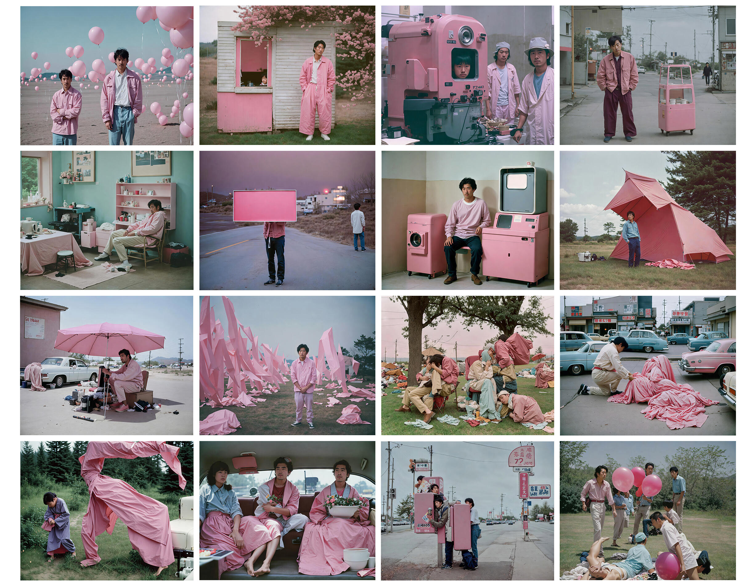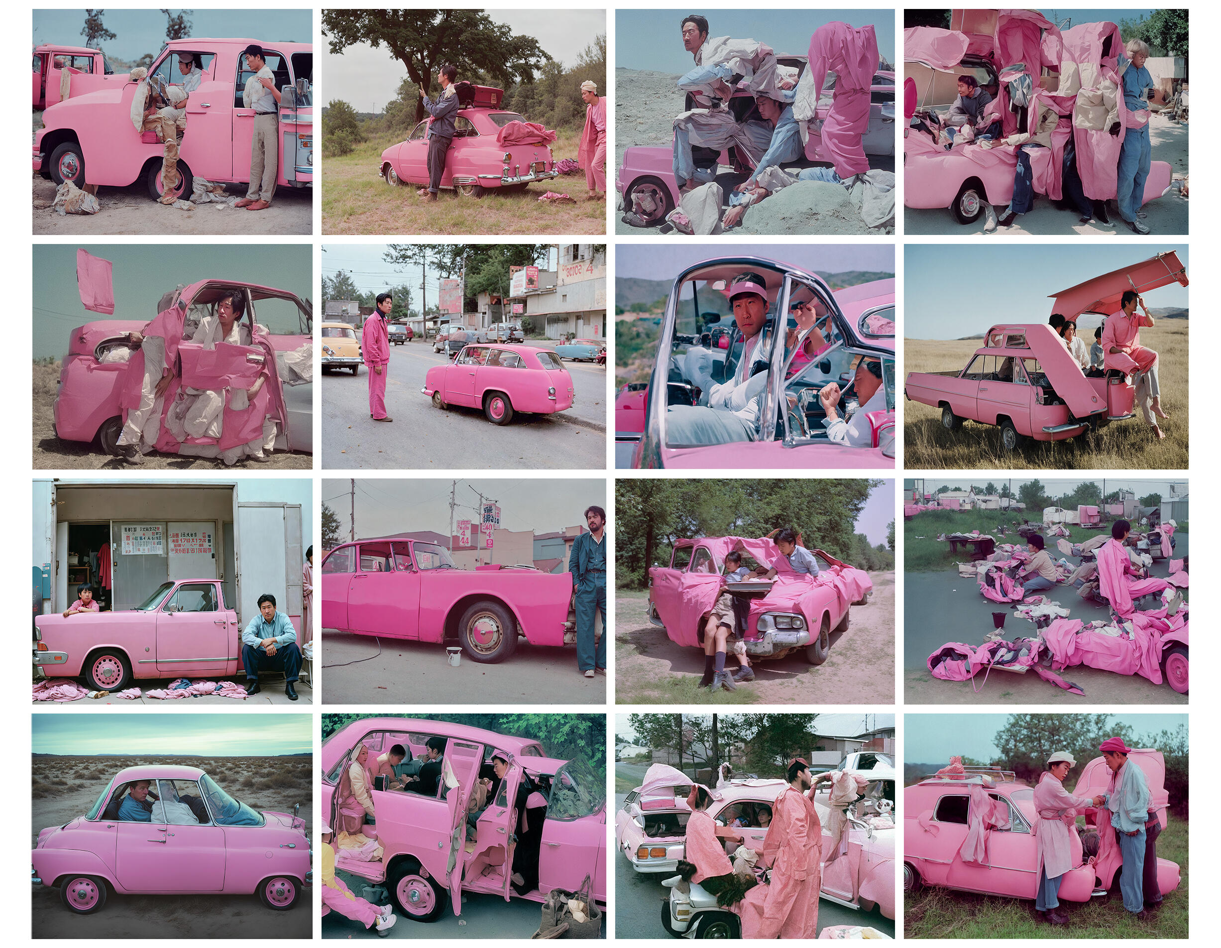 An Other who refuses to be color-coded into gender-specific hues or interactions. How many pink-garbed people can pile into a pink car going nowhere, in images that partake equally of Edward Hopper, Hieronymus Bosch and Marx (Brothers).